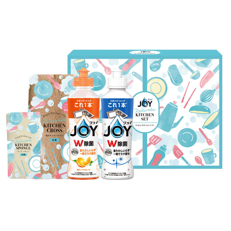 除菌ジョイコンパクト:170mL・除菌ジョイコンパクト オレンジの香り:170mL・らくらくキッチンスポンジ・らくらく吸水キッチンクロス×各1